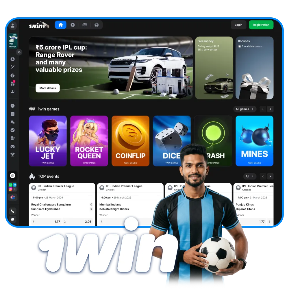 Find out all the details on the official 1win website, register, and get a welcome bonus of 500% up to INR 180,000!